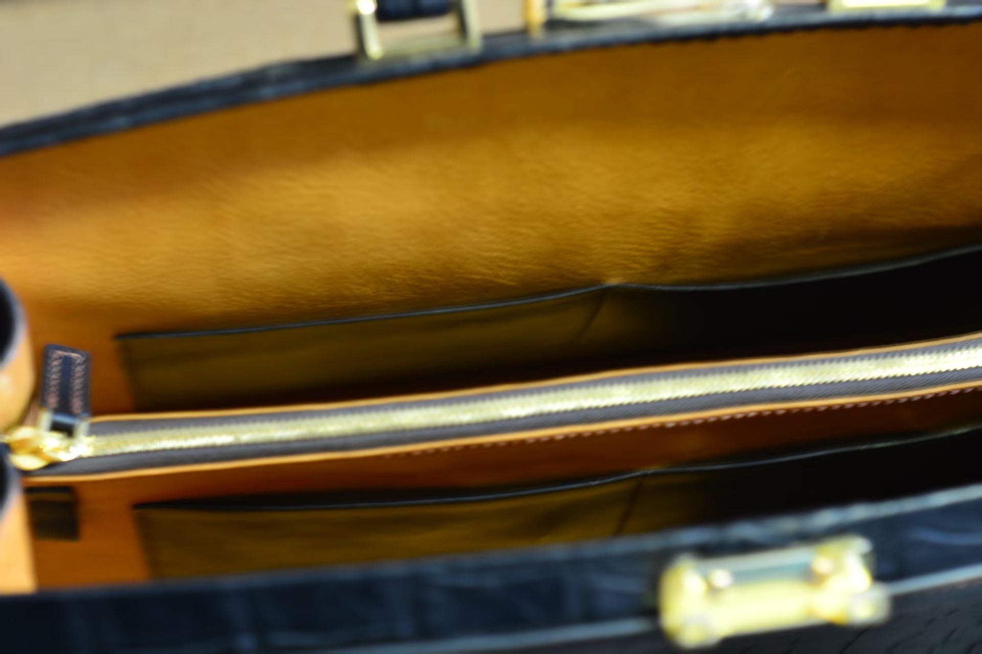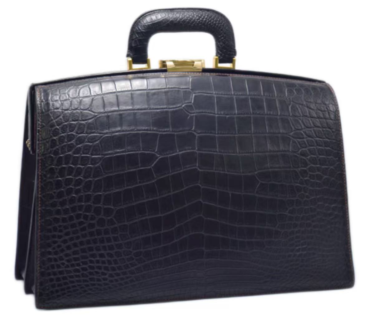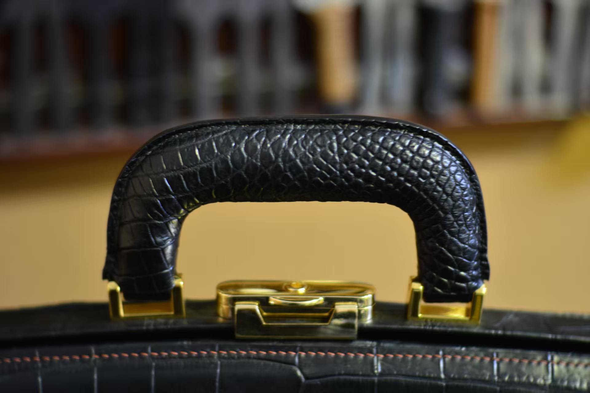 This alligator briefcase is an ideal choice for business people, redefining high-end business travel equipment with a perfect fusion of luxurious design and practical. The body of the bag is made of high-quality alligator skin, and the black leather has a stable and atmospheric texture, which not only shows a luxurious style visually, also has excellent wear resistance and scratch resistance, which is not easy to leave scratches in daily use, and can form a unique patina over a long period of use, making the more mellow over time.